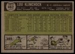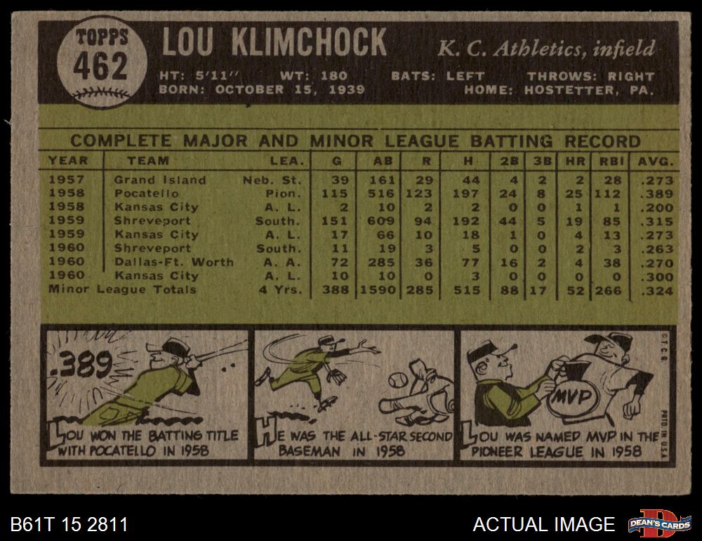 1961 Topps #462 Lou Klimchock 2 - GOOD