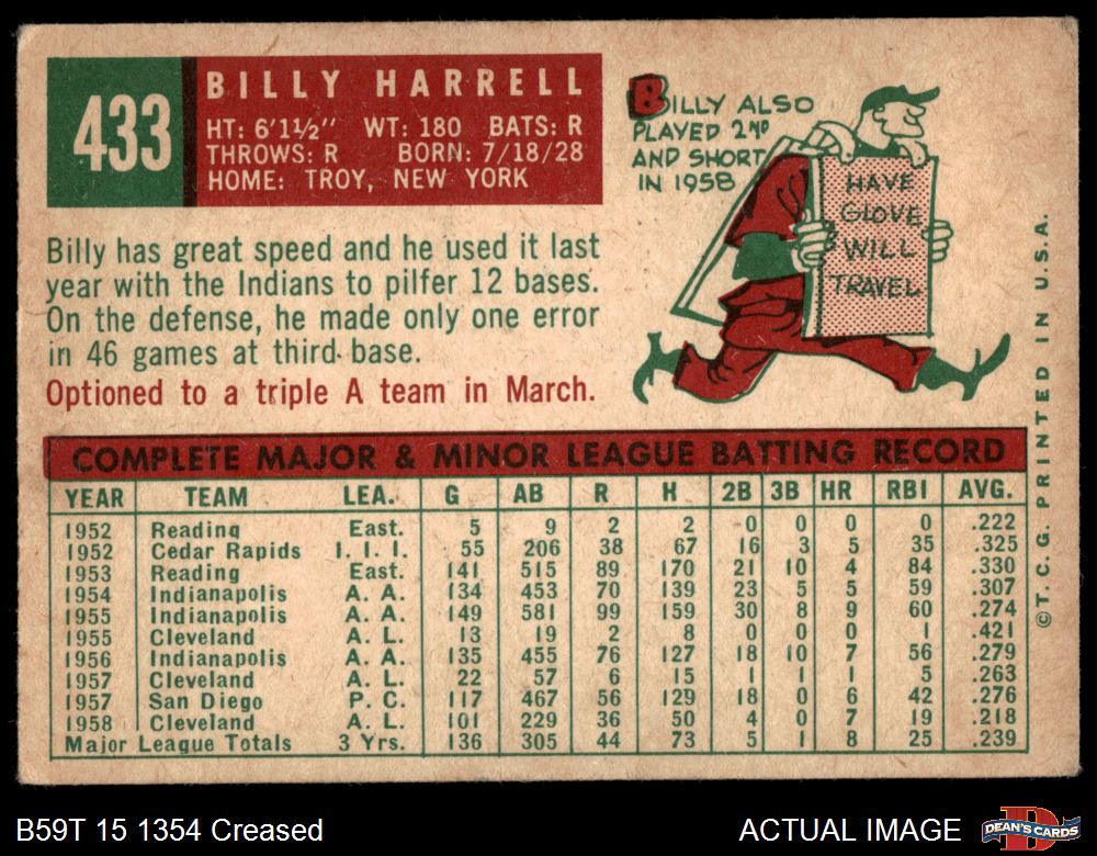 1959 Topps #433 Billy Harrell 2 - GOOD