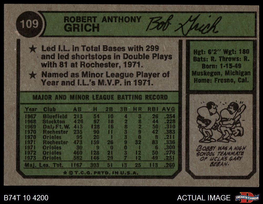 1974 Topps #109 Bobby Grich 6 - EX/MT