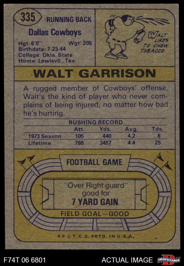 1974 Topps #335 Walt Garrison 4 - VG/EX