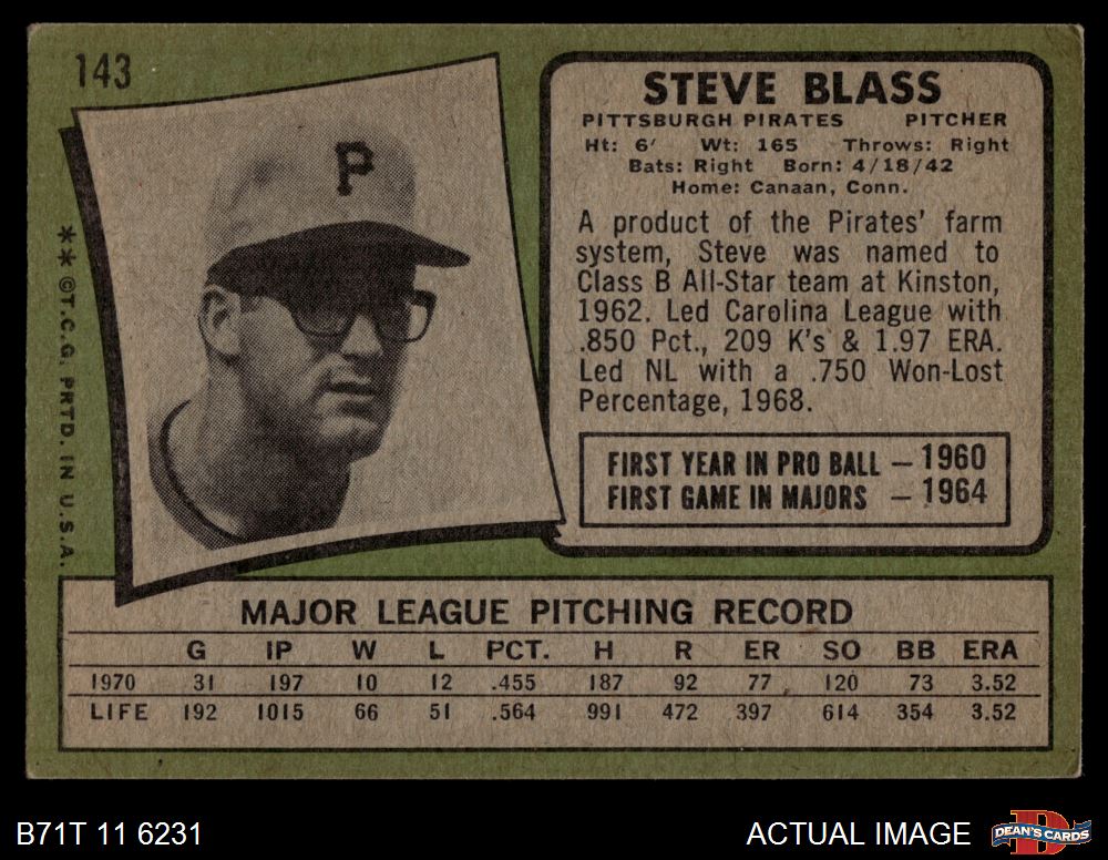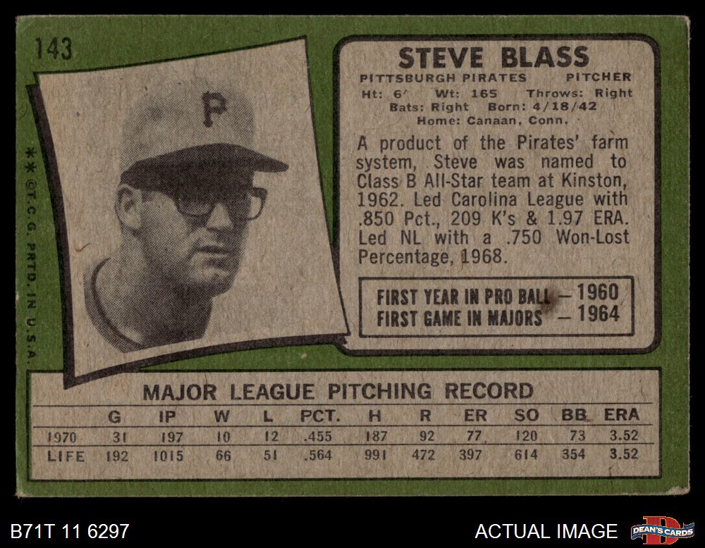 1971 Topps #143 Steve Blass 3.5 - VG+