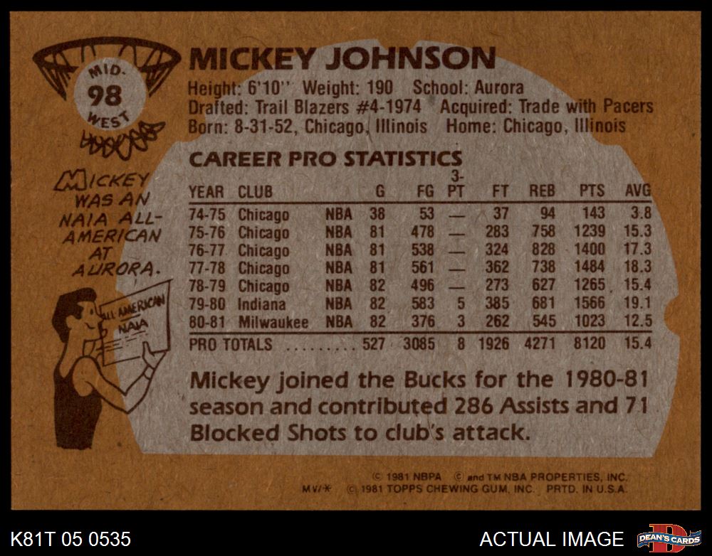 1981 Topps #98 MW Mickey Johnson 8 - NM/MT