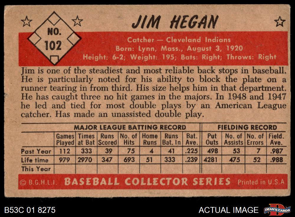 1953 Bowman #102 Jim Hegan 4 - VG/EX