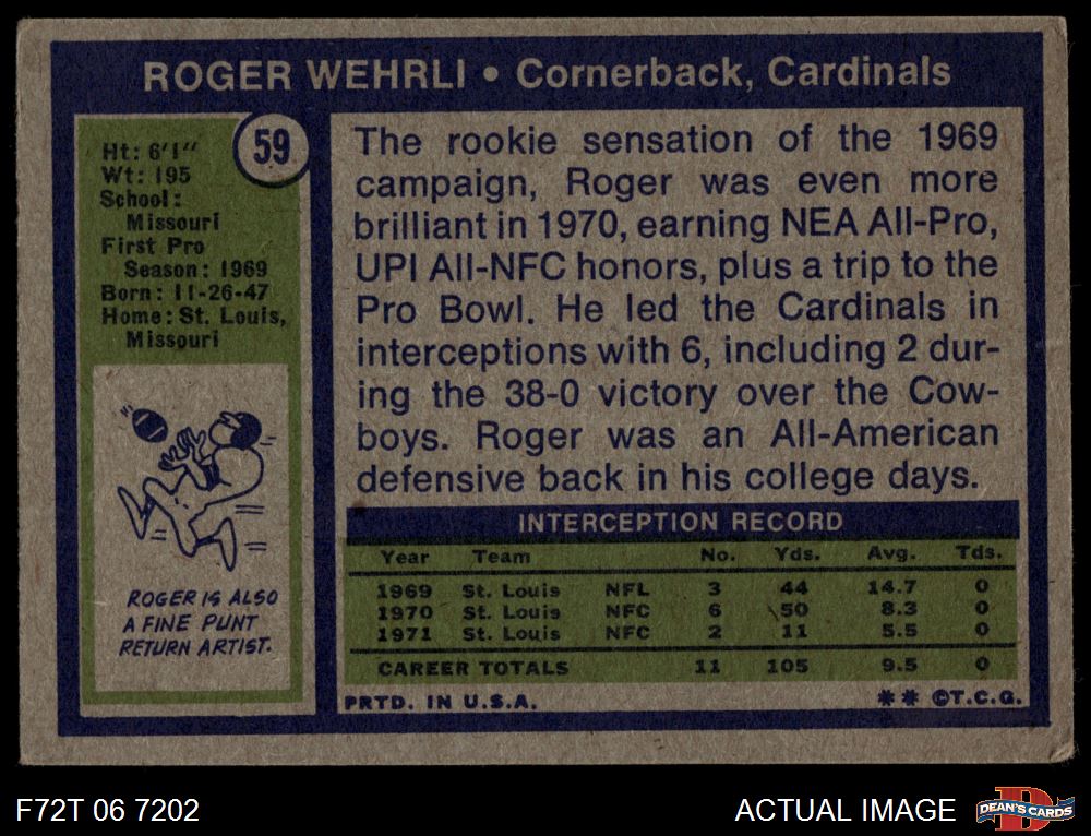 1972 Topps #59 Roger Wehrli
