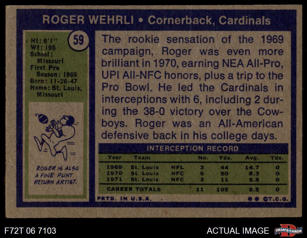 1972 Topps #59 Roger Wehrli 2 - GOOD