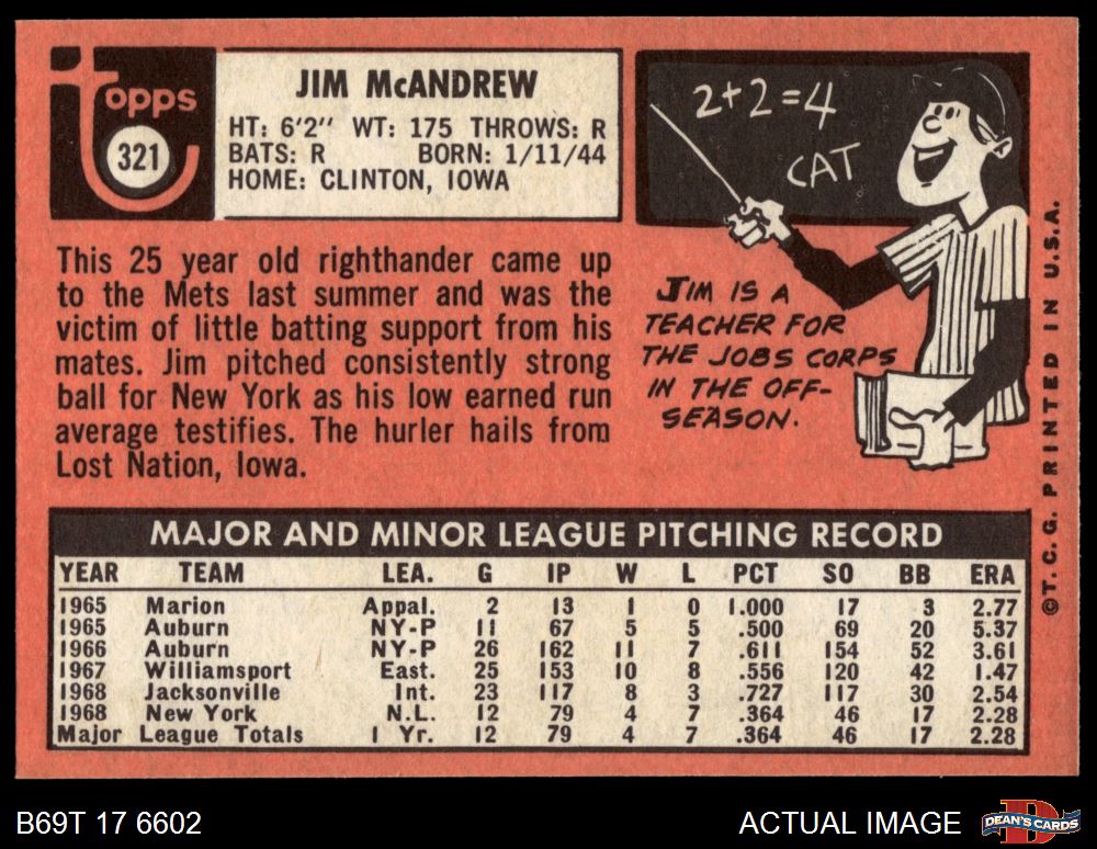 1969 Topps #321 Jim McAndrew 7.5 - NM+