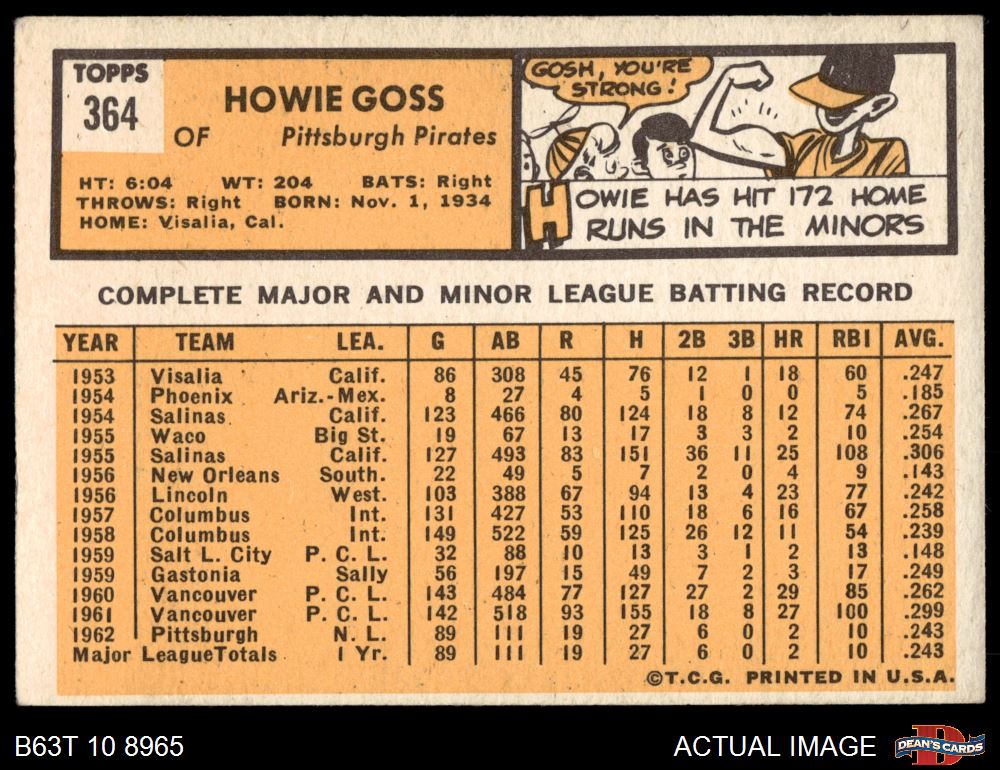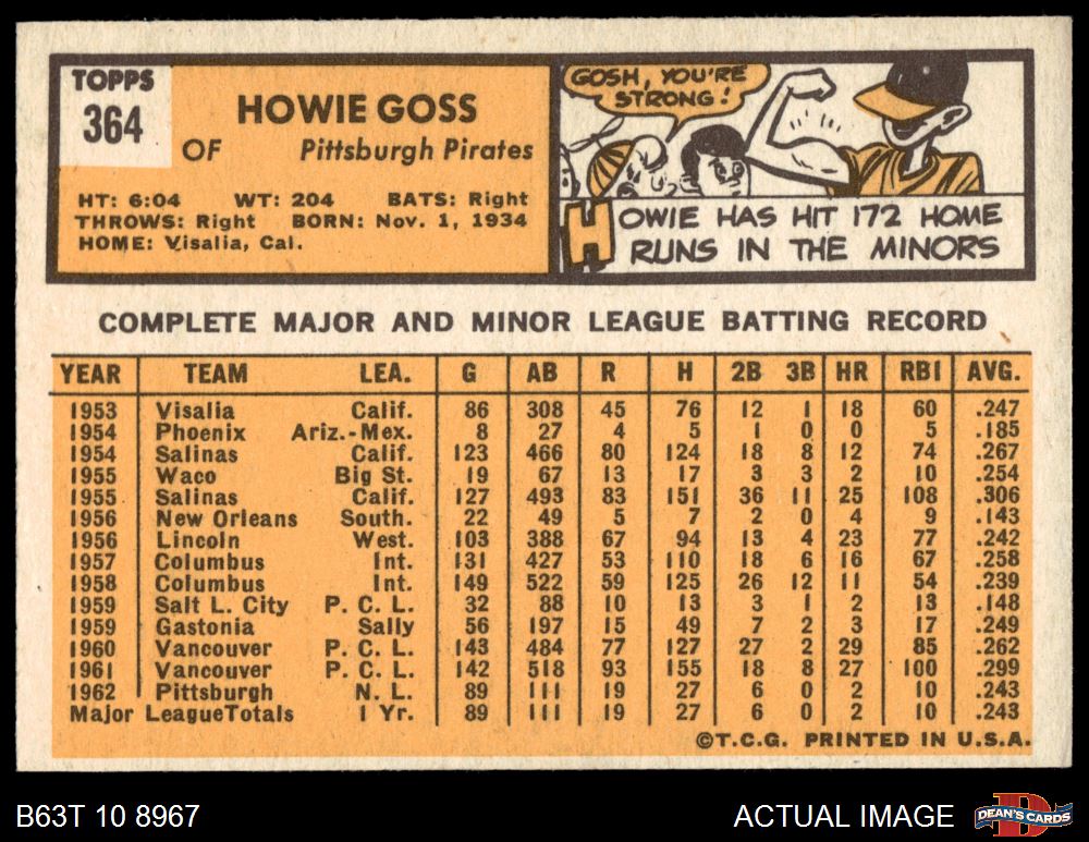 1963 Topps #364 Howie Goss 4 - VG/EX