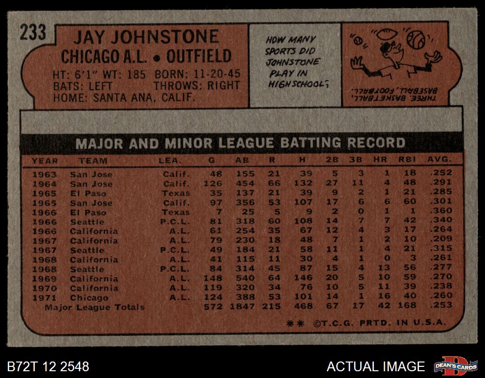 1972 Topps #233 Jay Johnstone 4 - VG/EX