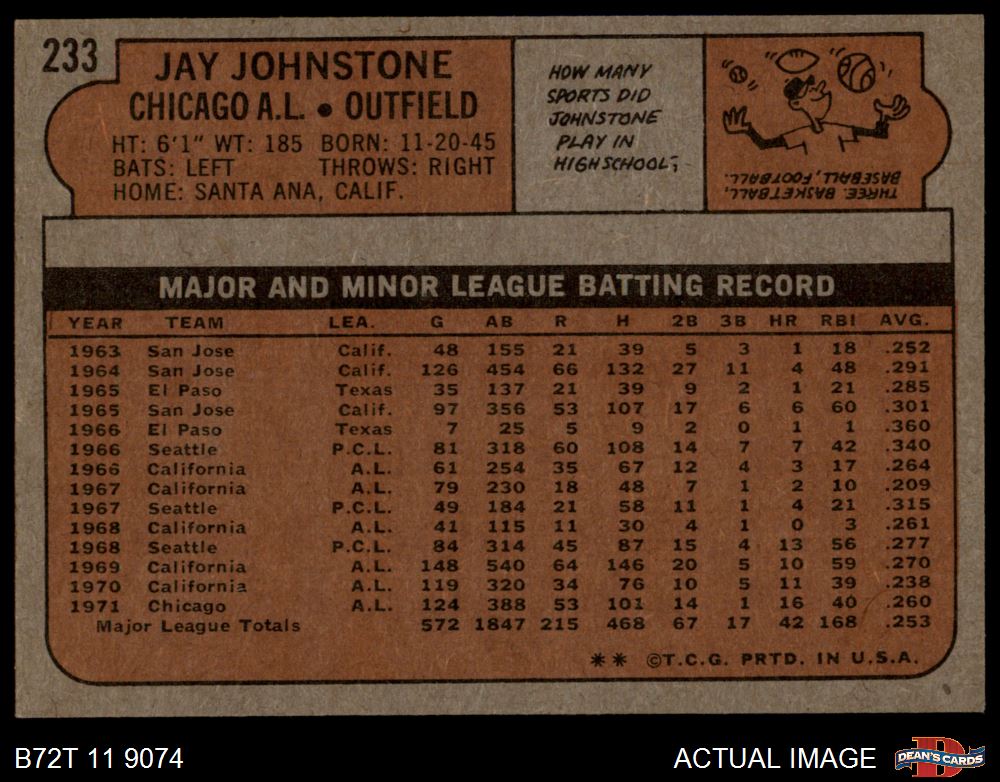 1972 Topps #233 Jay Johnstone 6 - EX/MT