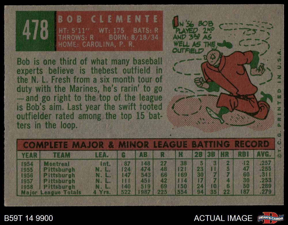 1959 Topps #478 Roberto Clemente 4 - VG/EX