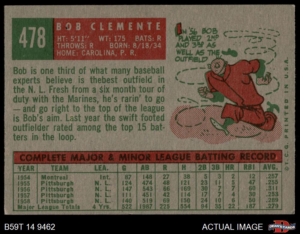 1959 Topps #478 Roberto Clemente 6 - EX/MT