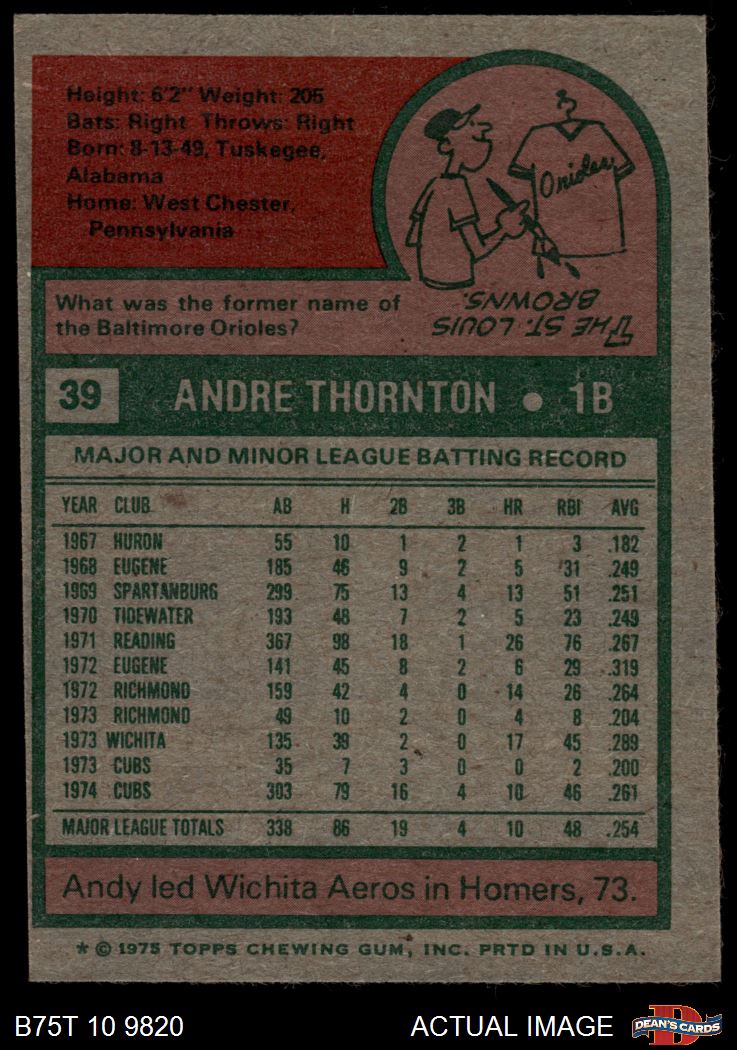 1975 Topps #39 Andre Thornton 6 - EX/MT
