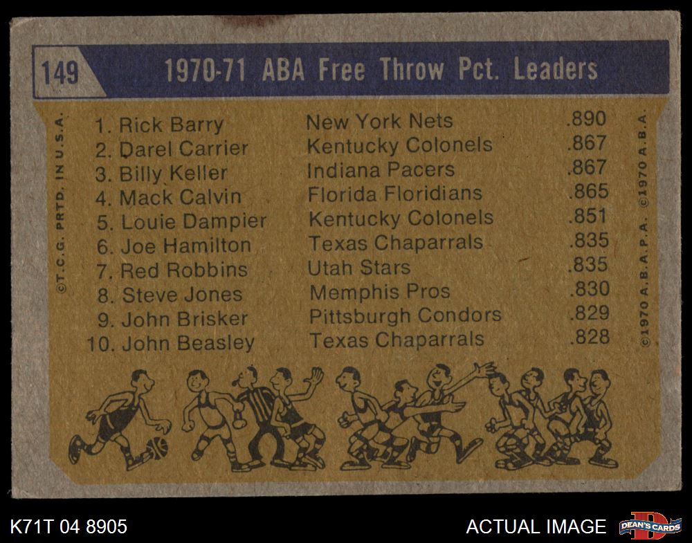 1971 Topps #149 - Rick Barry / Billy Keller / Darrel Carrier ABA Free Throw Pct Leaders 1.5 - FAIR