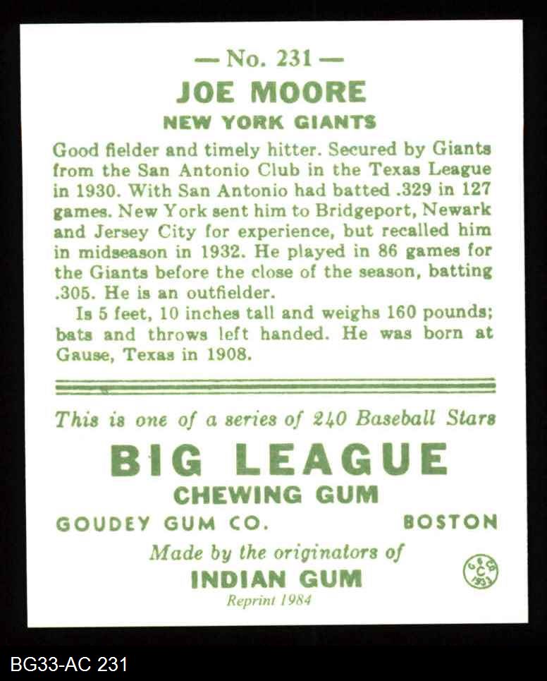 1933 Goudey Reprint #231 Joe Moore 8 - NM/MT