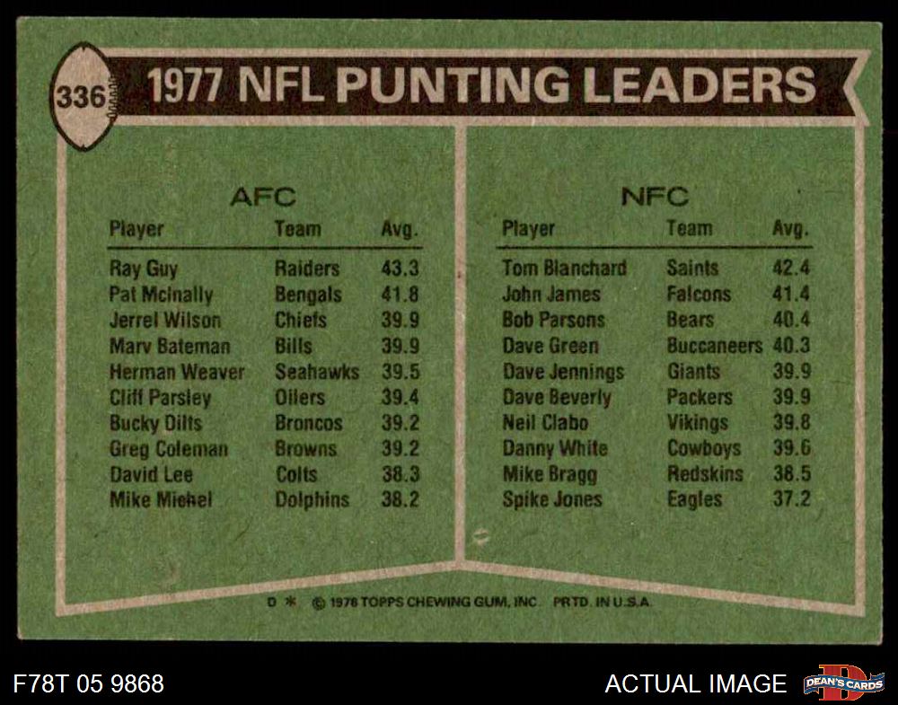 1978 Topps #336 - Ray Guy / Tom Blanchard Punting Leaders 4 - VG/EX