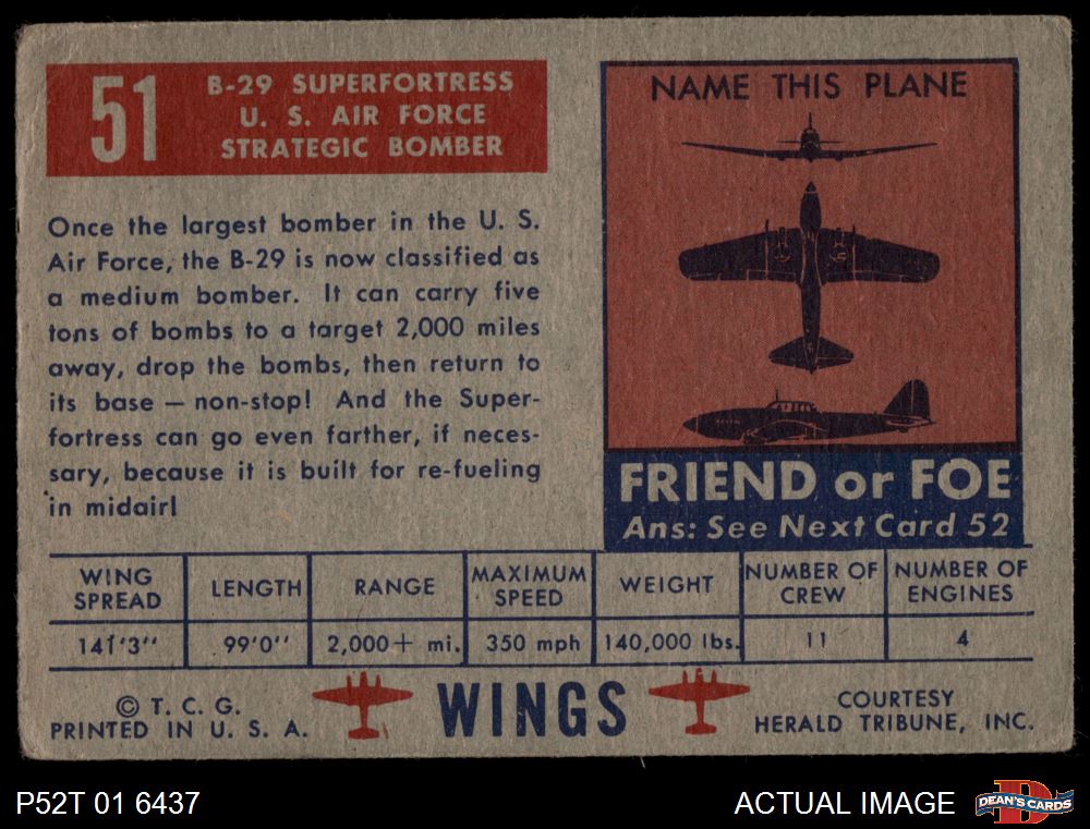1952 Topps Wings #51  B-29 Superfortress Front Thumbnail