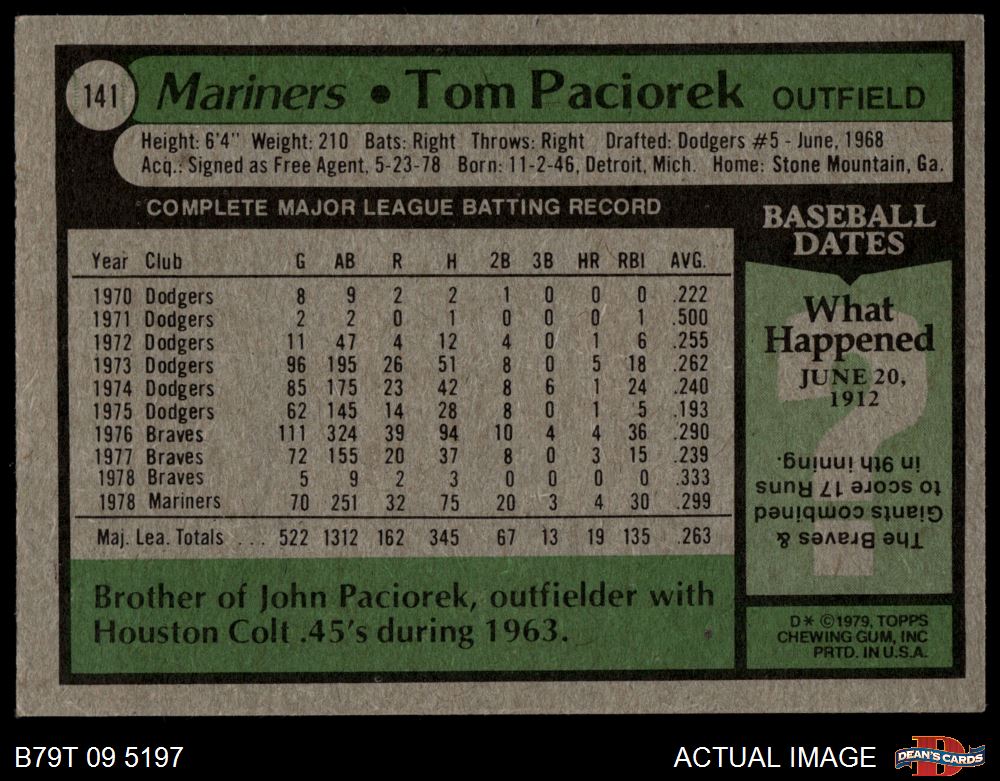 1979 Topps #141 Tom Paciorek 4.5 - VG/EX+