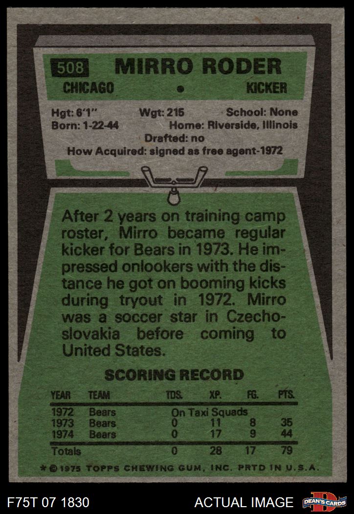 1975 Topps Football Cards (8,409 available)1975 Topps Bears (423 available)