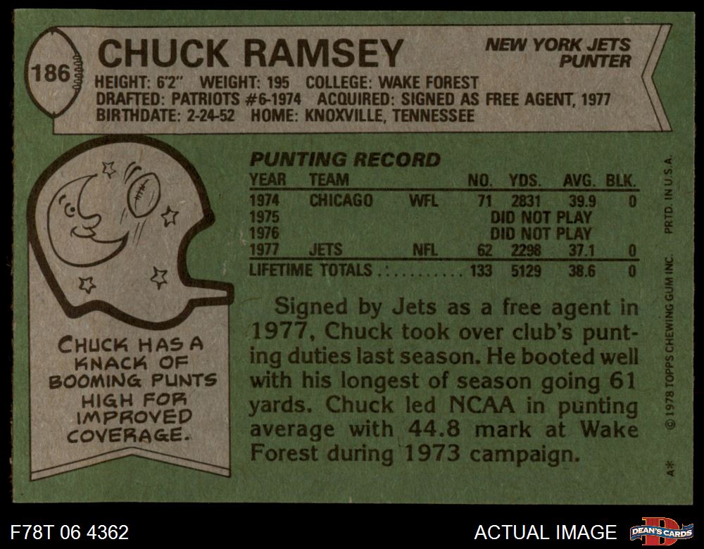 1978 Topps #186 Chuck Ramsey 5 - EX