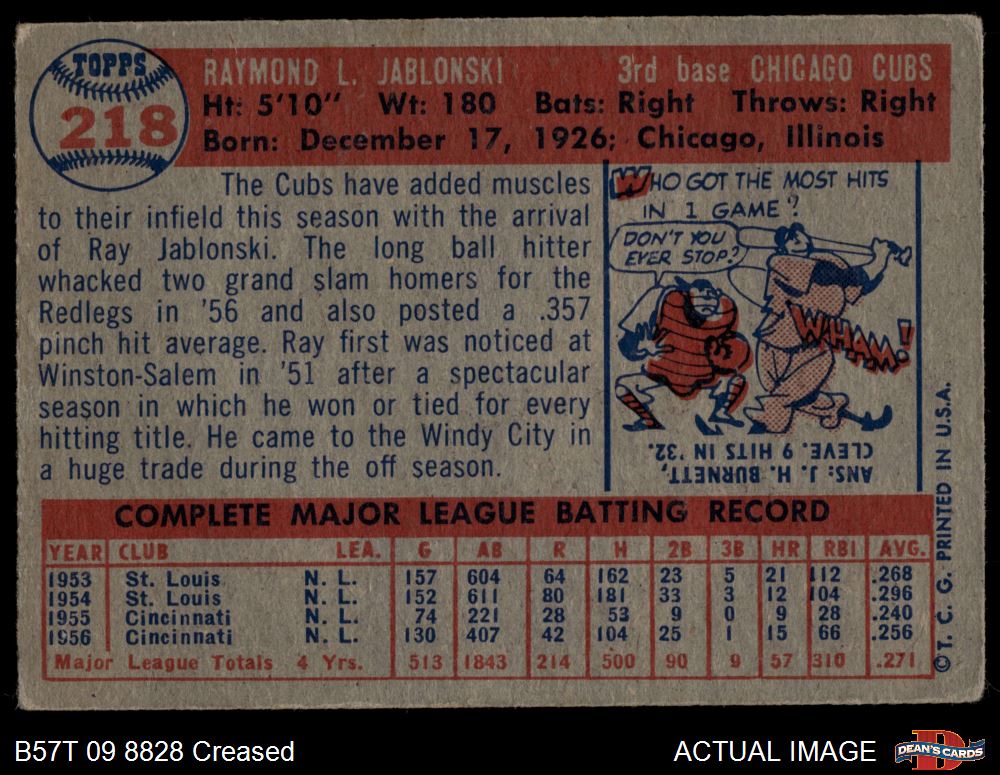 1957 Topps #218 Ray Jablonski