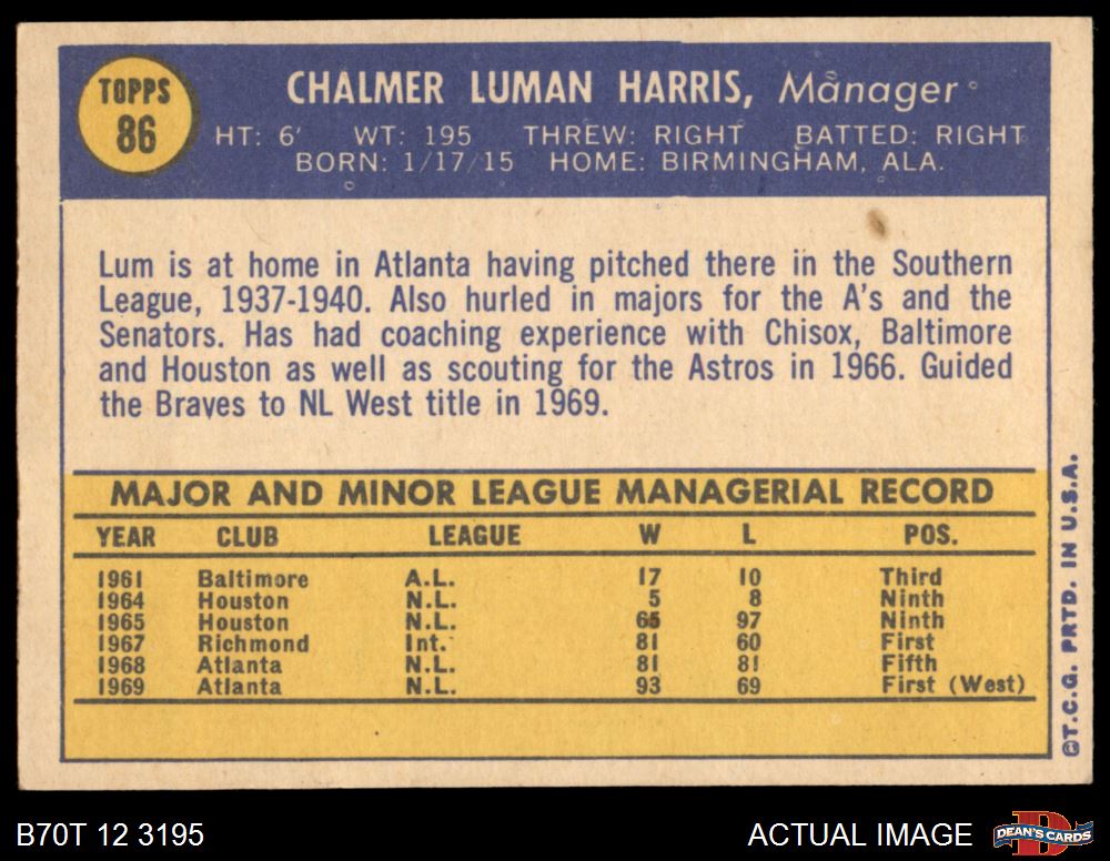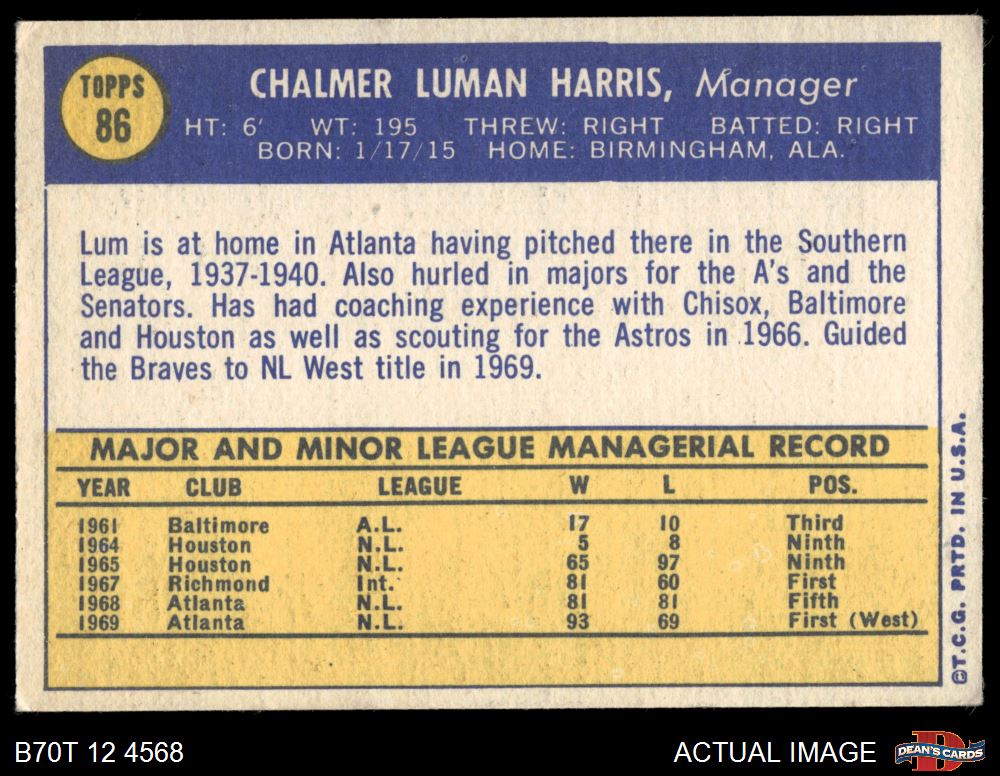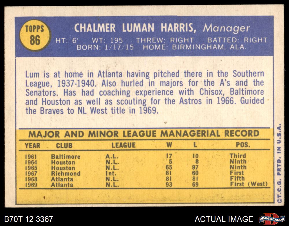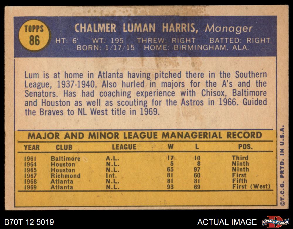 1970 Topps #86 Lum Harris 4 - VG/EX