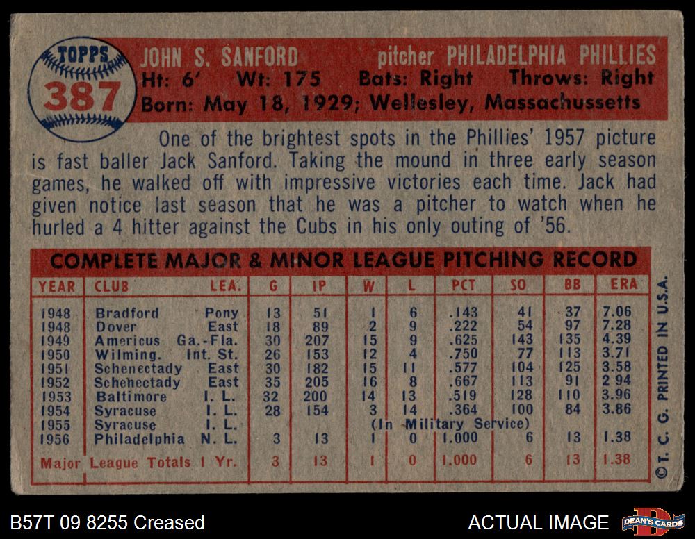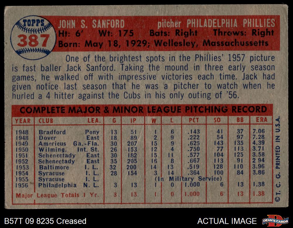 1957 Topps #387 Jack Sanford 2 - GOOD