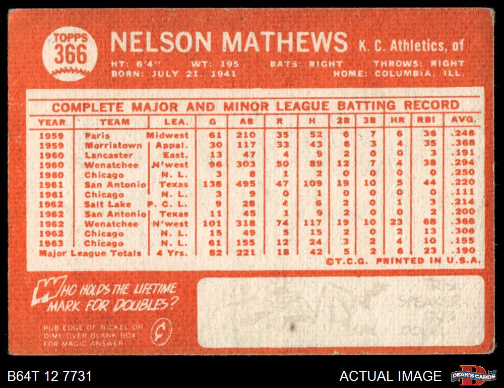 1964 Topps #366 Nelson Mathews
