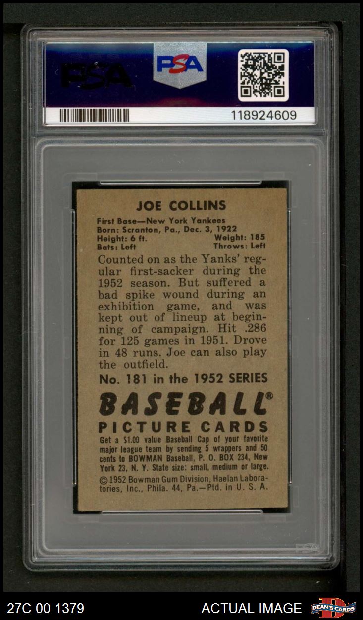 1952 Bowman #181 Joe Collins PSA 4 - VG/EX
