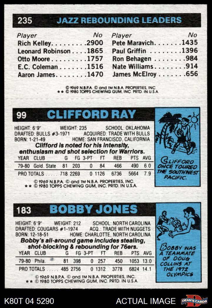 1980 Topps - Bobby Jones / Clifford Ray / Ben Poquette 183 / 99 / 235 7 - NM
