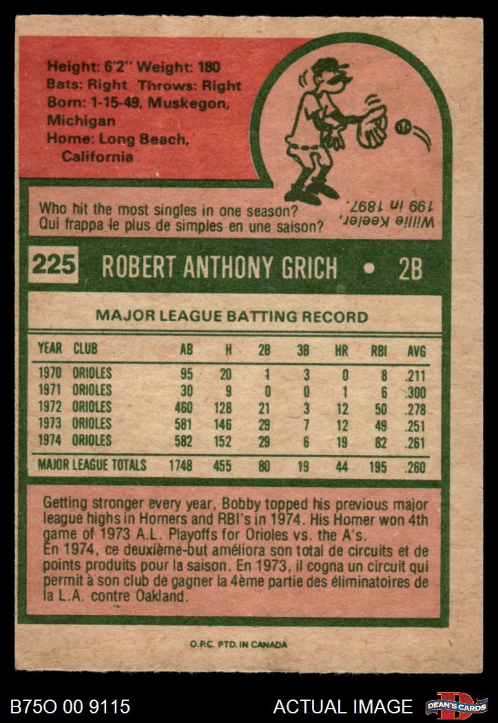 1975 O-Pee-Chee #225 Bobby Grich 6 - EX/MT