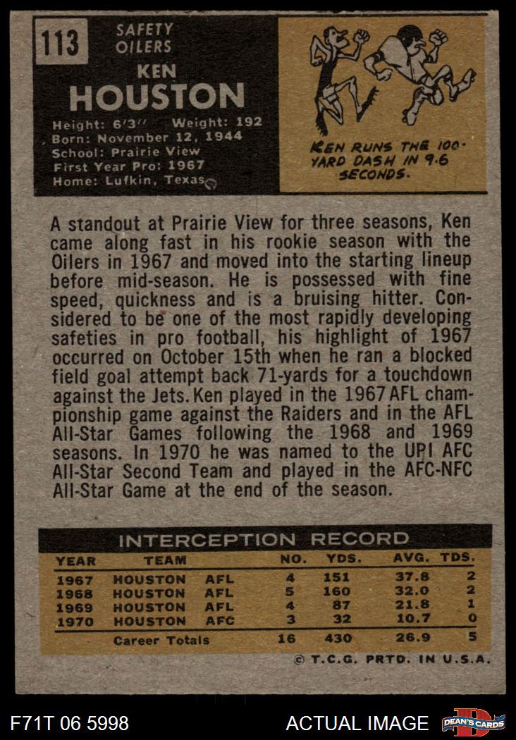 1971 Topps #113 Ken Houston 6 - EX/MT