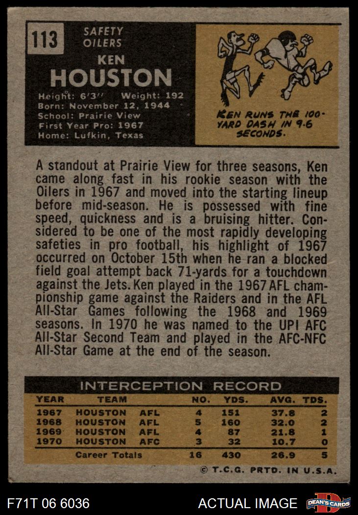 1971 Topps #113 Ken Houston 6.5 - EX/MT+