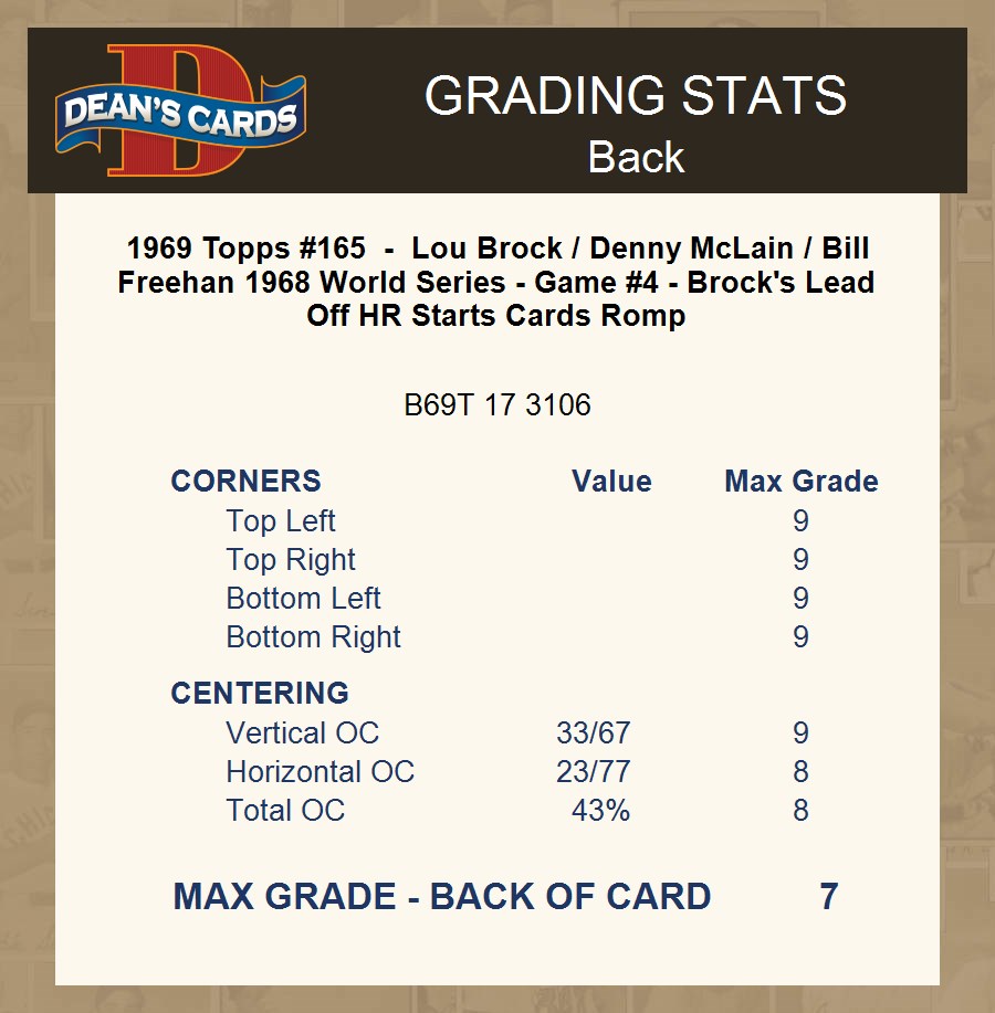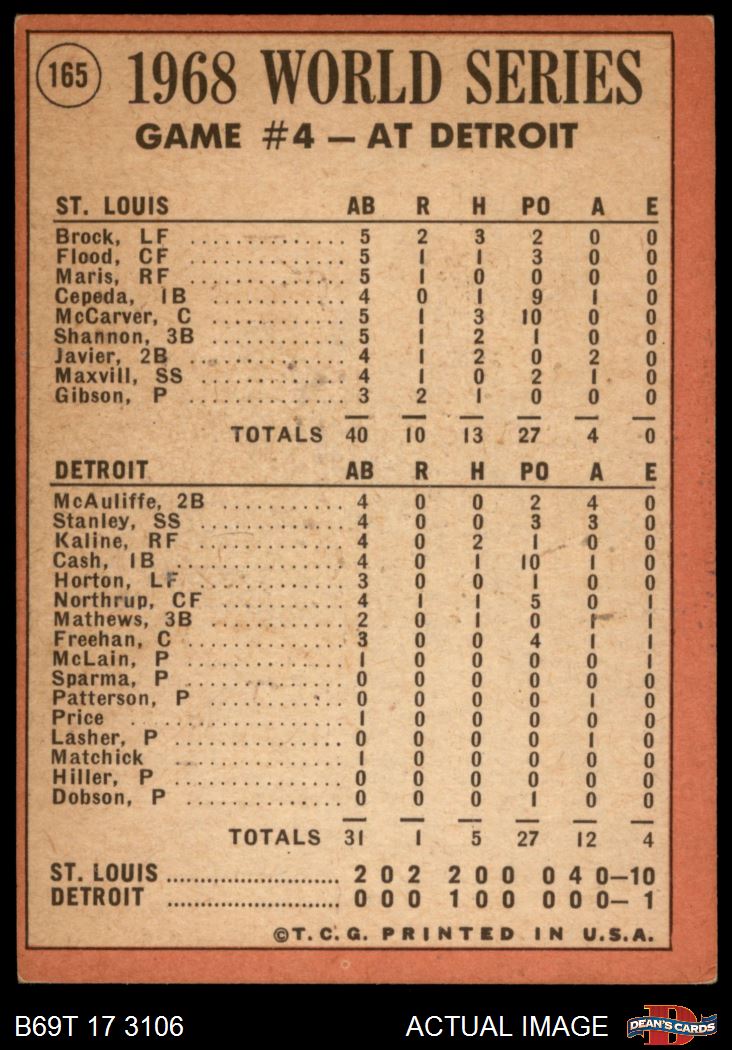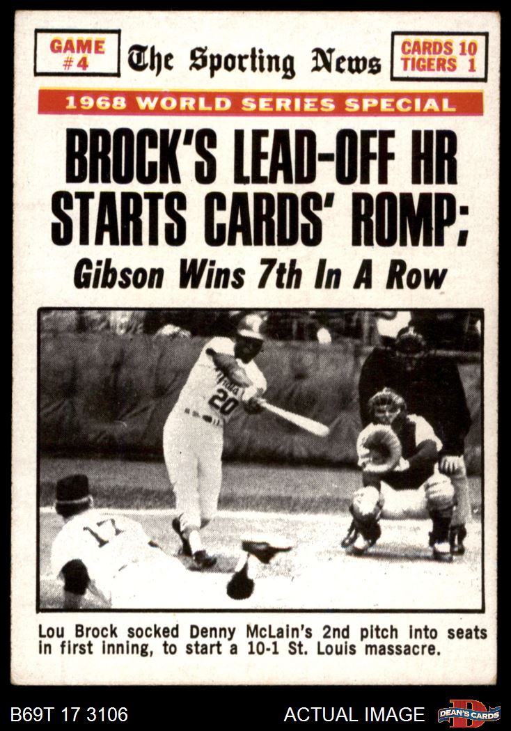 1969 Topps #165 - Lou Brock / Denny McLain / Bill Freehan 1968 World Series - Game #4 - Brock's Lead Off HR Starts Cards Romp 4 - VG/EX