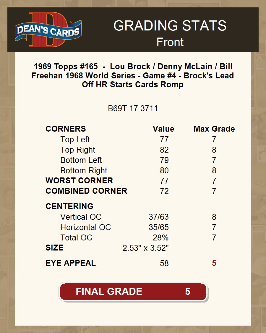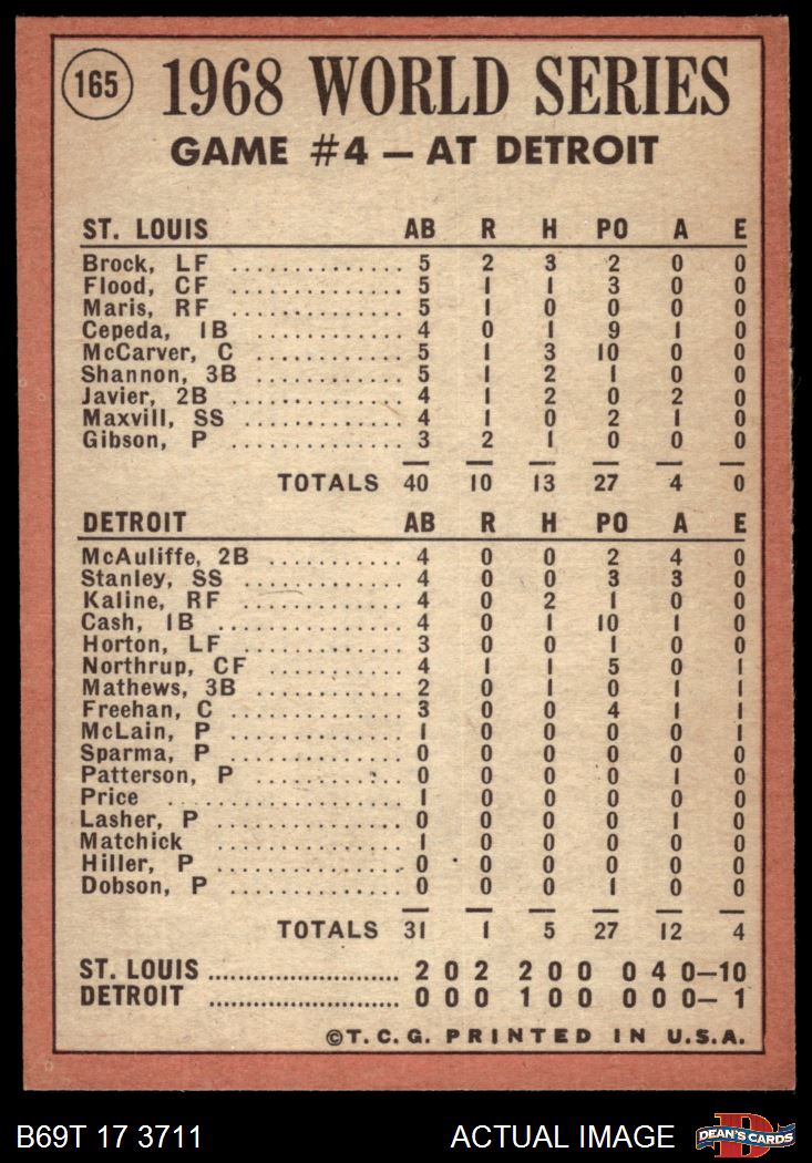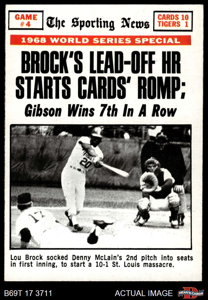 1969 Topps #165 - Lou Brock / Denny McLain / Bill Freehan 1968 World Series - Game #4 - Brock's Lead Off HR Starts Cards Romp 5 - EX