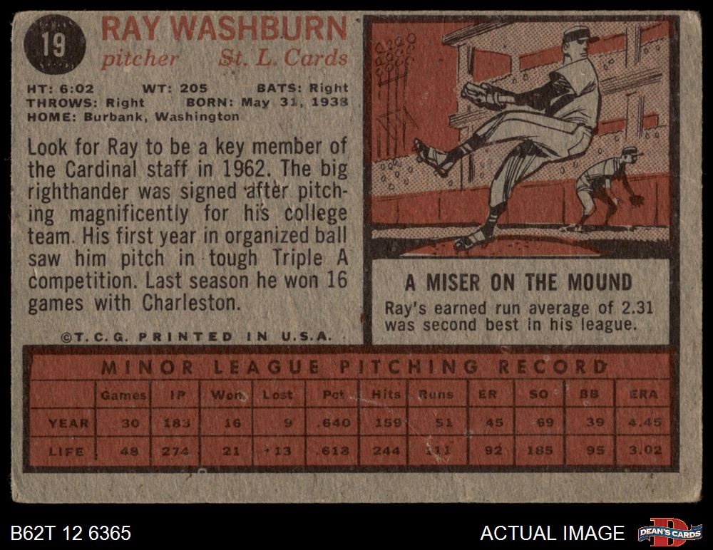 1962 Topps #19 Ray Washburn 1.5 - FAIR