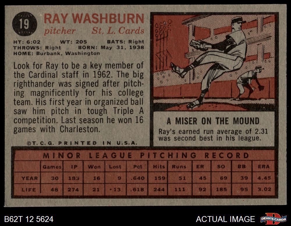 1962 Topps #19 Ray Washburn 6.5 - EX/MT+