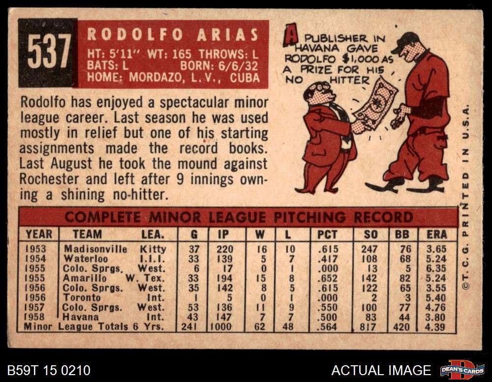 1959 Topps #537 Rodolfo Arias 3 - VG