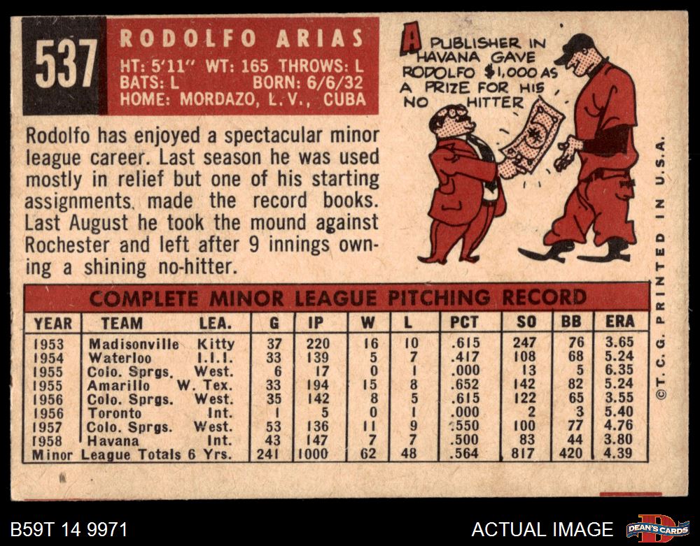 1959 Topps #537 Rodolfo Arias 4 - VG/EX