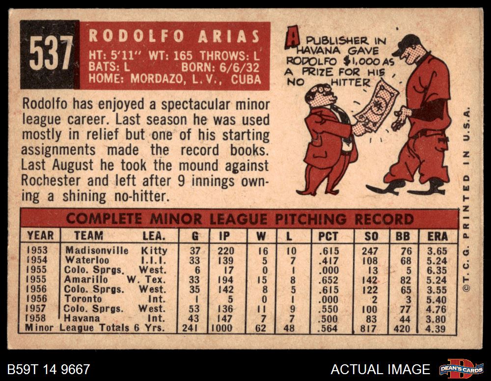 1959 Topps #537 Rodolfo Arias 4.5 - VG/EX+