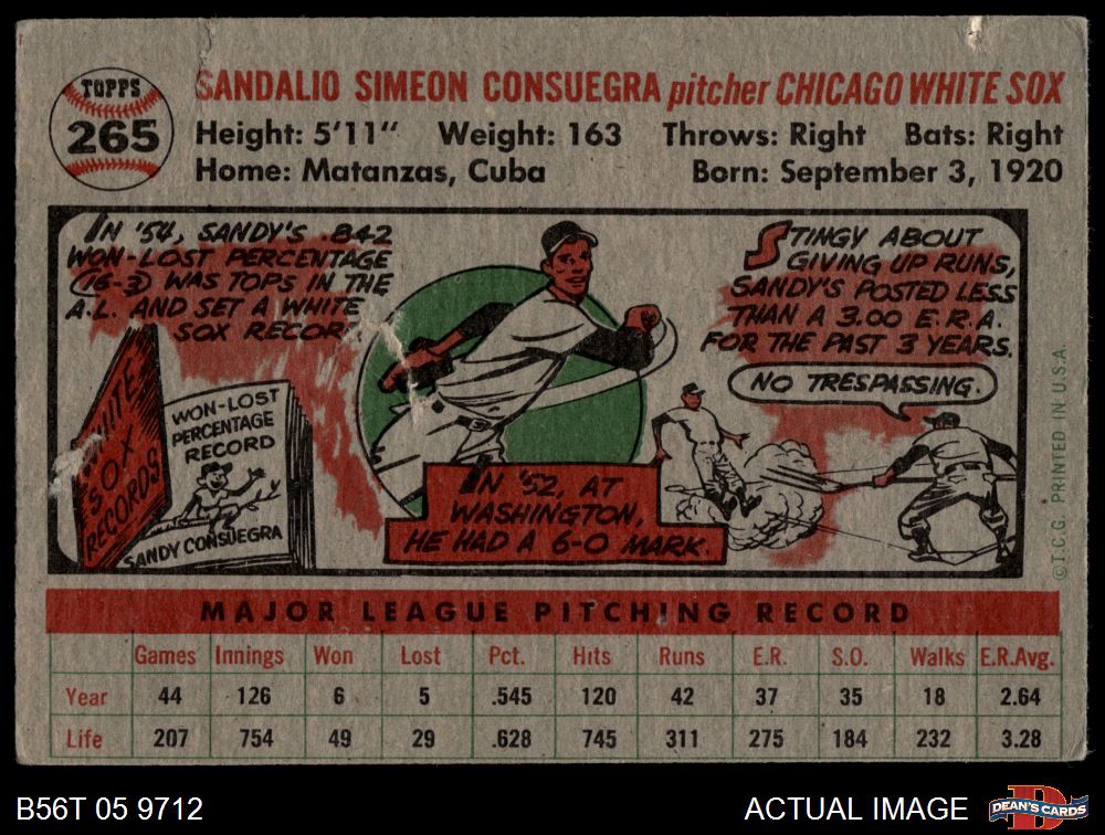 1956 Topps #265 Sandy Consuegra AUTHENTIC