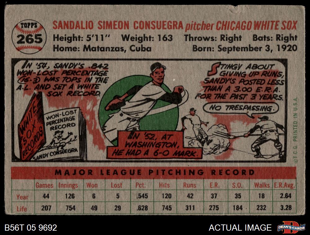 1956 Topps #265 Sandy Consuegra 2 - GOOD