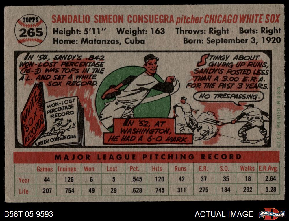 1956 Topps #265 Sandy Consuegra 3 - VG