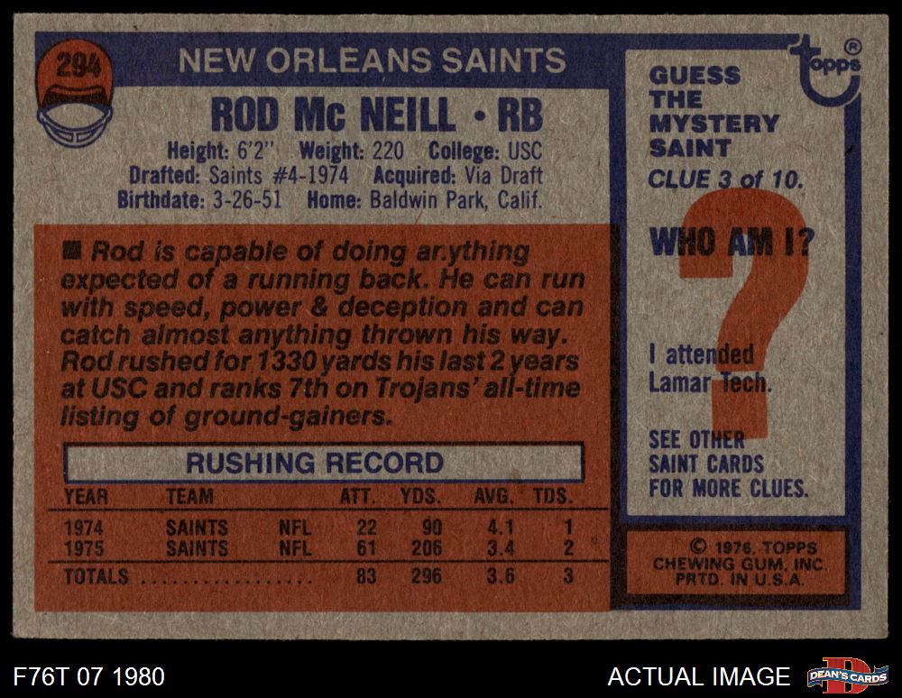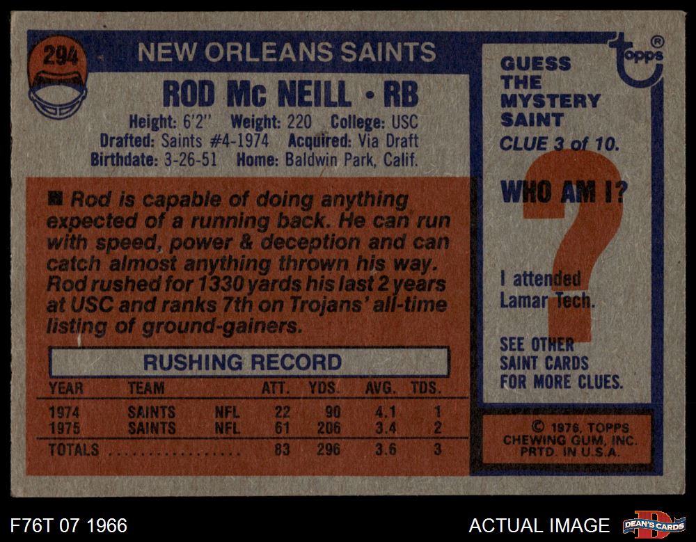 1976 Topps #294 Rod McNeill