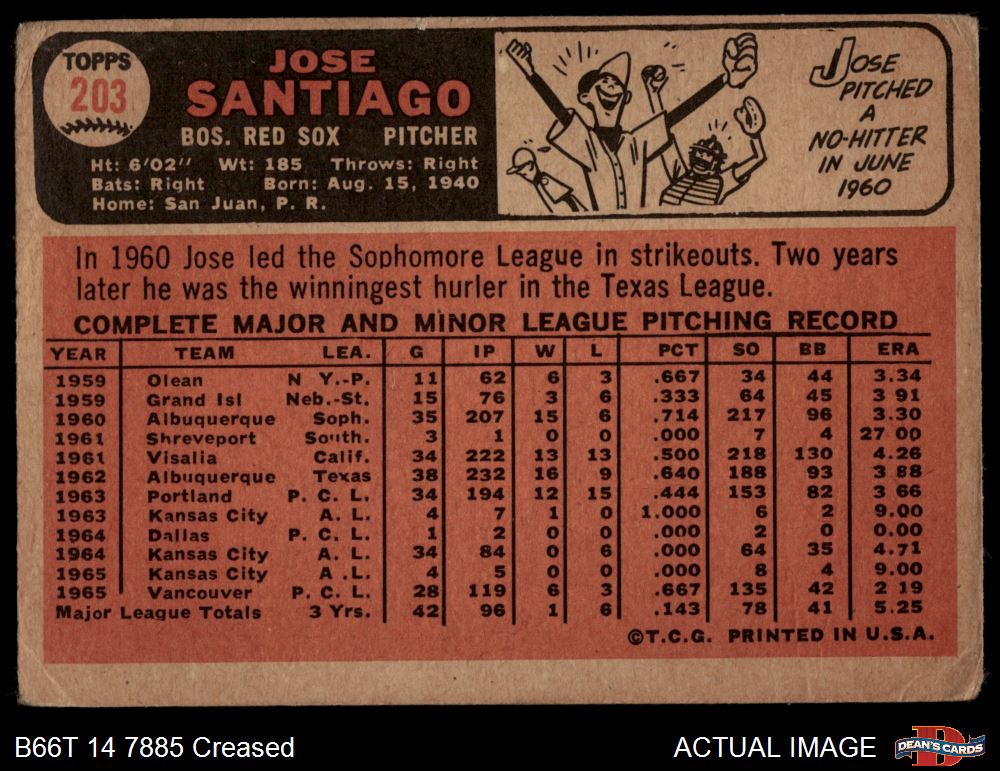 1966 Topps #203 Jose Santiago 1 - POOR