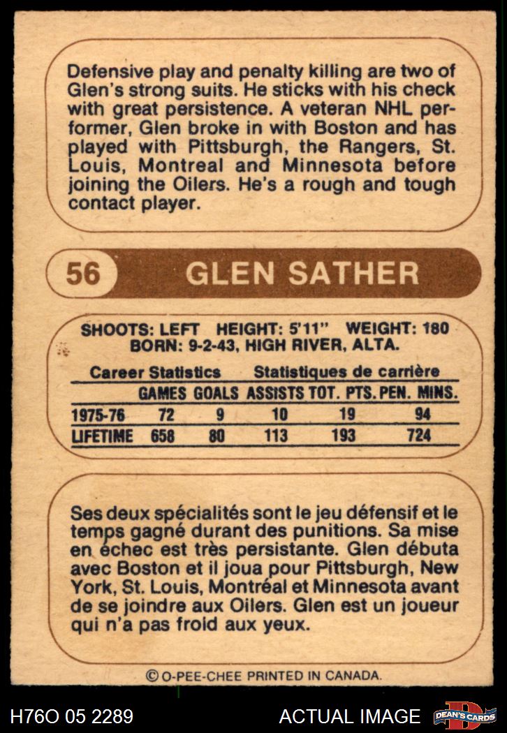 1976 O-Pee-Chee WHA #56 Glen Sather