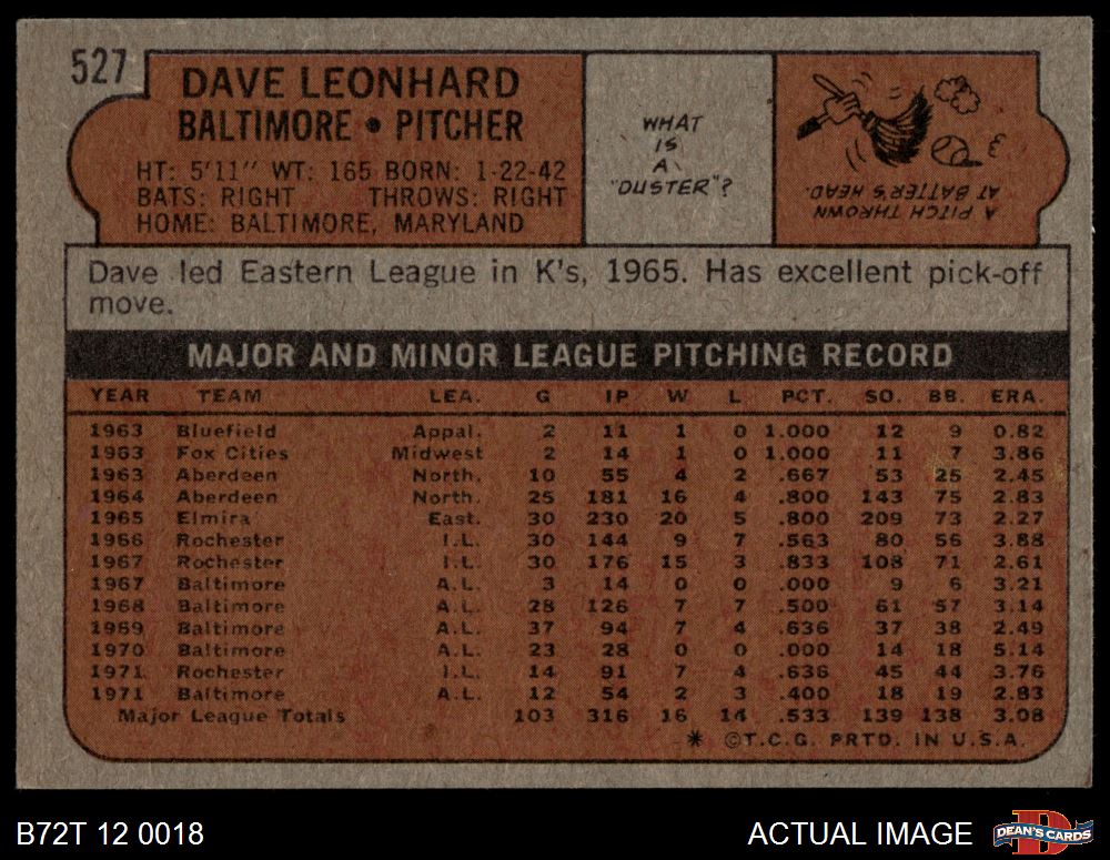 1972 Topps #527 Dave Leonhard