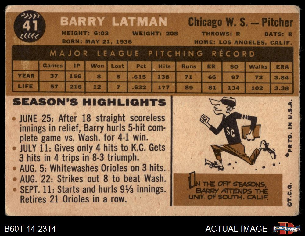 1960 Topps #41 Barry Latman 1.5 - FAIR