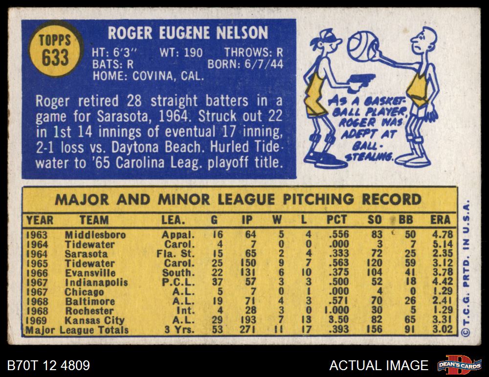 1970 Topps #633 Roger Nelson 6 - EX/MT