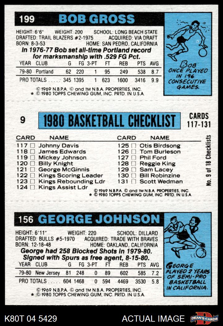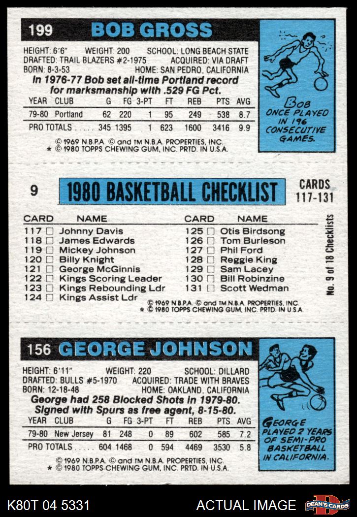 1980 Topps - George Johnson / Bill Cartwright / Bob Gross 156 / 9 / 199 8 - NM/MT