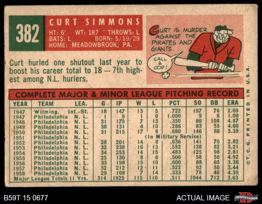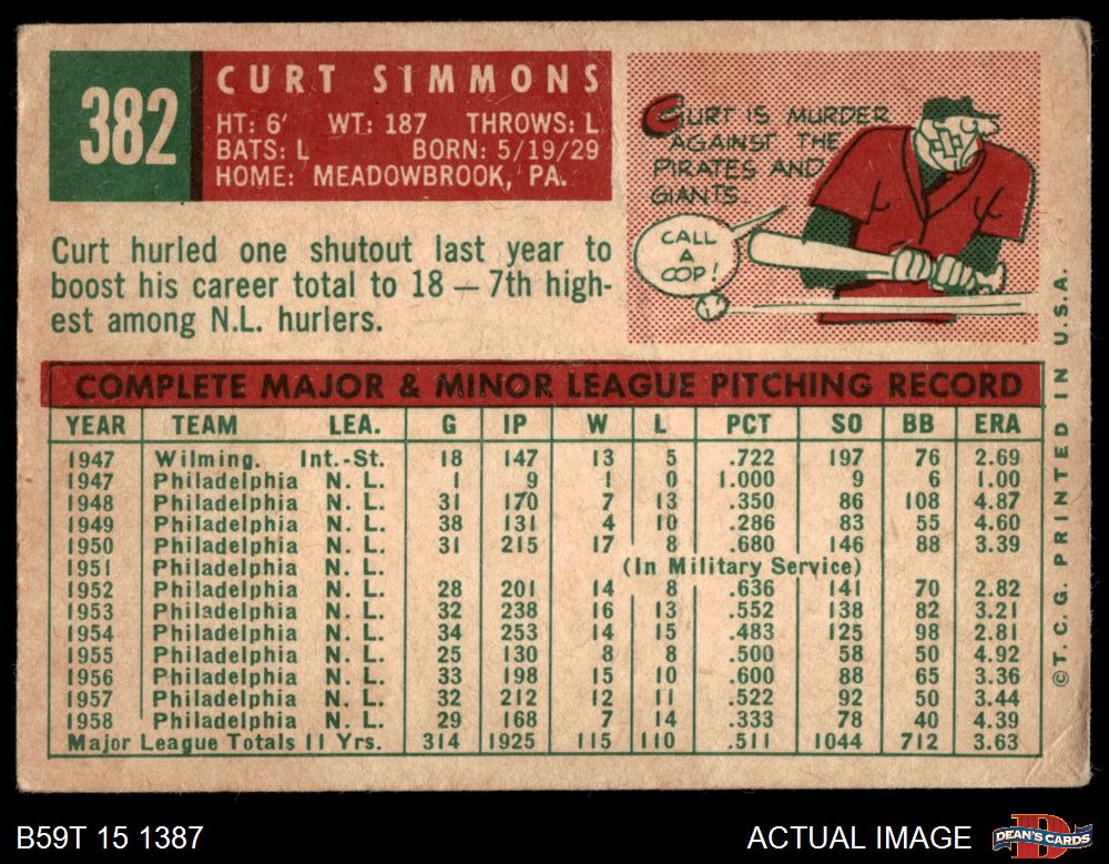 1959 Topps #382 Curt Simmons 1.5 - FAIR